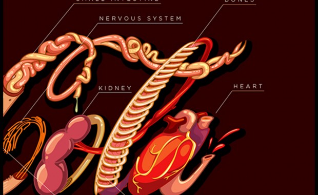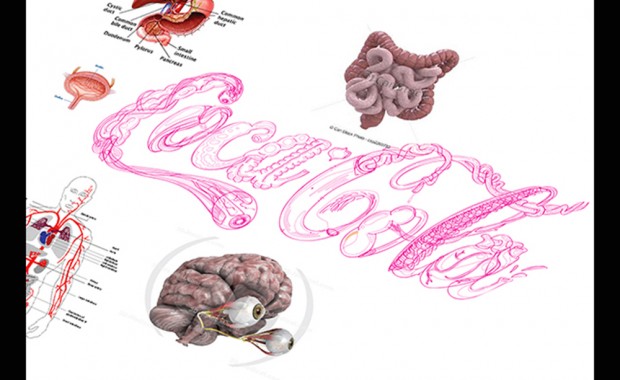 En él se pueden ver el páncreas, el estómago, cerebro, intestino grueso y delgado, ojos, corazón, hígado, entre otros órganos, como los "dañados" por la bebida gaseosa.