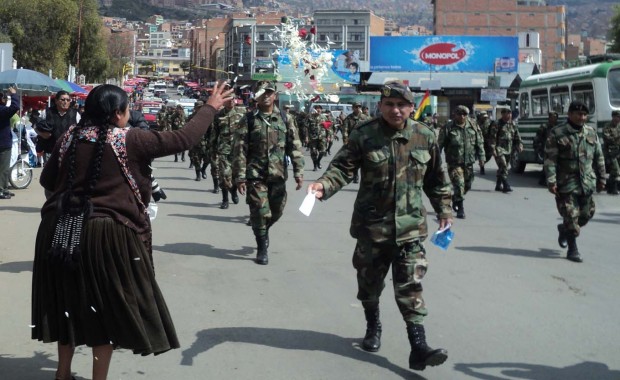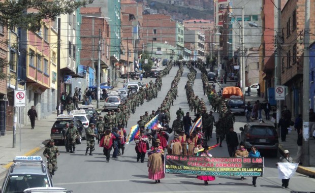 El conflicto de suboficiales y sargentos se agrava, luego de la orden de baja contra 702 militares. La marcha de protesta del jueves sumó el respaldo de los Ponchos Rojos de Achacachi y grupos de ciudadanos en La Paz. La bronca parece crecer en medio de presiones y amenazas