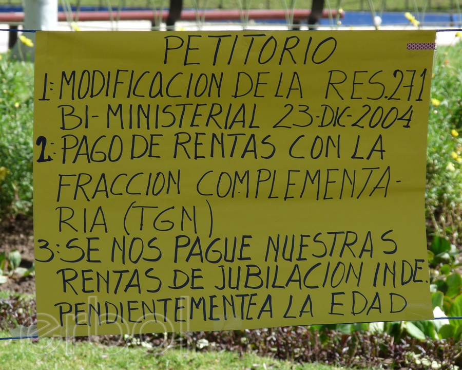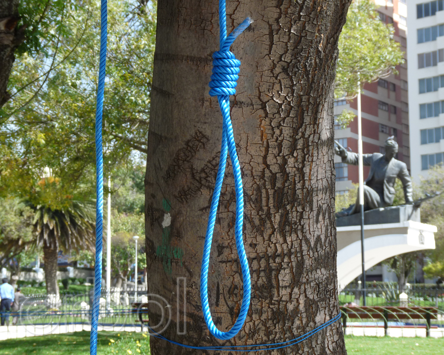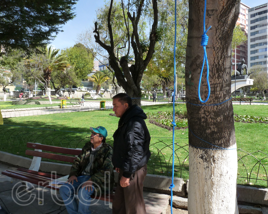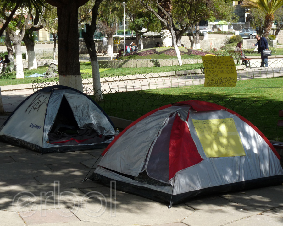 Catorce militares del servicio pasivo de las Fuerzas Armadas de Bolivia mantienen una vigilia desde hace 3 días en plaza Avaroa de la zona de Sopocachi de la ciudad de La Paz, en demanda del incremento en sus rentas; amenazan con ahorcarse en el lugar.