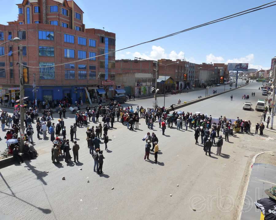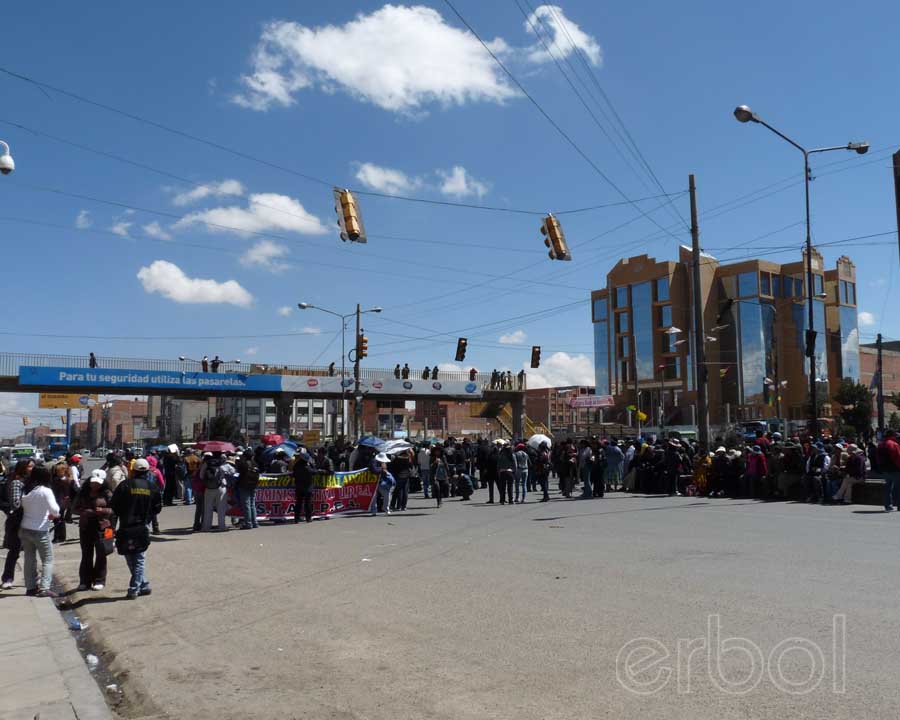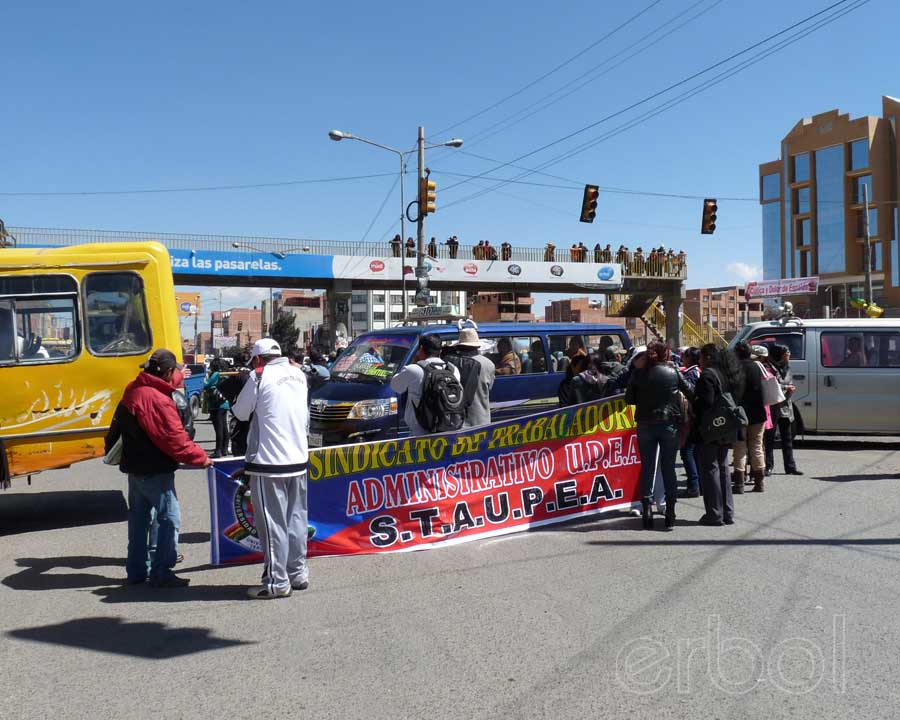 Un grupo de docentes y estudiantes protagonizaron un bloqueo en la avenida Juan Pablo II, vía que une la ciudad de La Paz con las provincias Los Andes, Omasuyos, Larecaja y otros, pidiendo el descongelamiento de las cuentas fiscales.