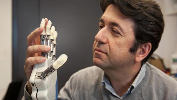 El profesor Silvestro Micera con el prototipo de mano prostética que transmite sensaciones.EPFL/Hillary Sanctuary