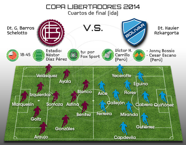 El partido entre Lanús y Bolívar por la Copa Libertadores ha sido tomado en cuenta por la casa de apuestas bwin, según muestra su portal en la presente jornada, dando como favorito al conjunto argentino por 8 a 2.