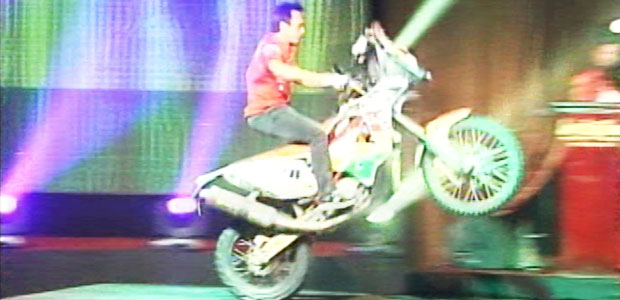Salvatierra ingresó al escenario realizando una demostración sorprendente con su motocicleta ante la sorpresa del público. El campeón mundial en la categoría +450 cc afina detalles de cara a una nueva versión que recorrerá territorio nacional.