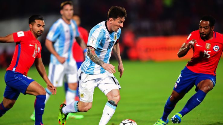 La selección argentina, con Lionel Messi como abanderado y capitán, recibirá hoy en Buenos Aires a su verdugo en las finales de las últimas dos Copas América, un conjunto chileno con bajas, en un partido decisivo para ambas selecciones en el camino hacia el Mundial de Rusia 2018. El compromiso comenzará a las 19:30.