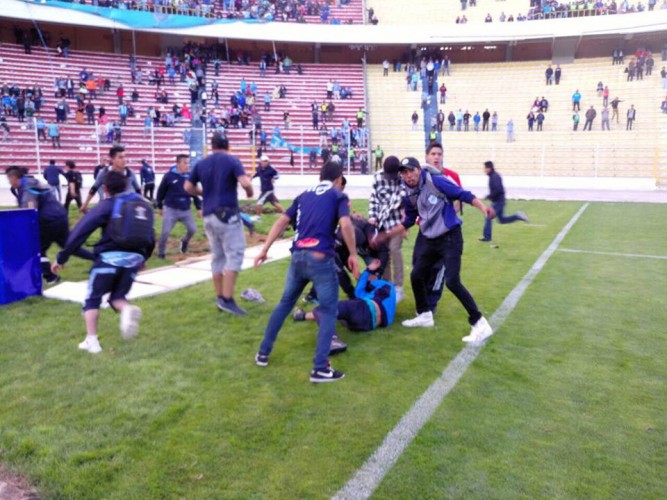 Bolívar logró una contundente victoria sobre San José (3-1), por la fecha 12, del torneo Apertura. Al terminar el compromiso cuando los jugadores expresaban sus declaraciones ante los medios en el campo de juego ingresaron hinchas del conjunto orureño dispuestos a dirigirse hasta el sector de la hinchada local.