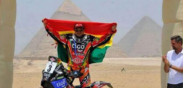 El nacional se impuso a grandes figuras del motociclismo mundial desde la primera etapa, sólo tuvo un percance en el cuarto día de carrera con su máquina, pero con profesionalismo y entrega solucionó los problemas sobre la marcha y volvió a dejar en alto el nombre de Bolivia.