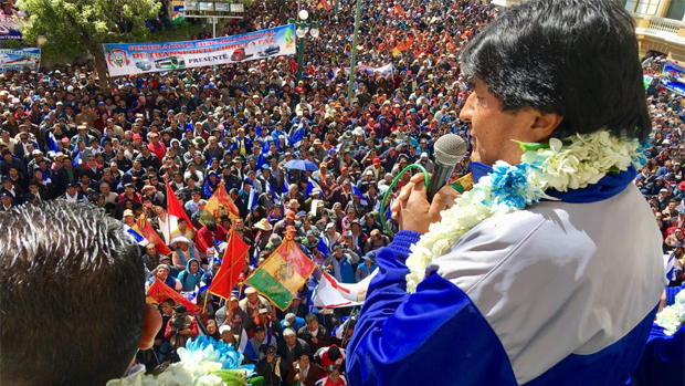 Ante una masiva concentración en Plaza Murillo, Morales dijo que esta modalidad solidaria de recaudación, fue estudiada de manera conjunta con los dirigentes del sector y el Ministerio de Economía y anunció que por su viabilidad será un modelo de jubilación en América Latina.
