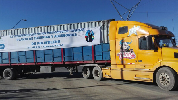 El Ministro de Hidrocarburos, Luis Sánchez, anunció este miércoles el arribó a la ciudad de El Alto del primer embarque de los materiales para la construcción de la Planta de Producción de Tuberías y Accesorios para Redes de Gas Natural.