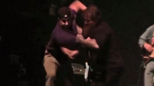 Así lo vivió en carne propia un admirador que tuvo el atrevimiento de invadir el templete. Esta escena, cotidiana en cualquier concierto, desató la furia del veterano rapero, quien rápidamente tiró su micrófono y con fuerza mandó a volar al joven exhibicionista.