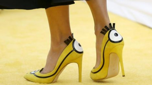 El sábado pasado, Sandra Bullock apareció en la alfombra amarilla del estreno de la película de “Los Minions” utilizando unos tacos altos inspirados en los simpáticos protagonistas del film.