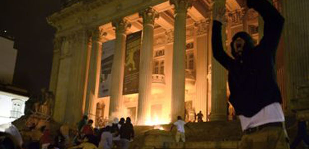 La protesta se ha tornado violenta en Río de Janeiro tras el ataque de un grupo de manifestantes con cócteles molotov y piedras a la sede de la Asamblea Legislativa en esta ciudad.