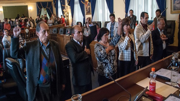 El presidente de la Cámara Alta, Eugenio Rojas, posesionó este jueves a los nuevos senadores titulares Ignacio Mendoza, Félix Martínez, Carmen Julieta Peredo, Orlando Ramos, Lenny Zaconeta y Jorge Chávez Suárez.