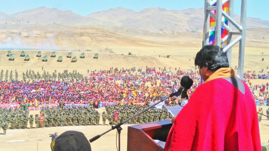 El presidente Evo Morales llamó este lunes a las Fuerzas Armadas bolivianas y de latinoamericanas a preservar la soberanía nacional e integración, en relación a Venezuela y la actitud de los Estados Unidos de aplicar “rabiosamente política de venganza".