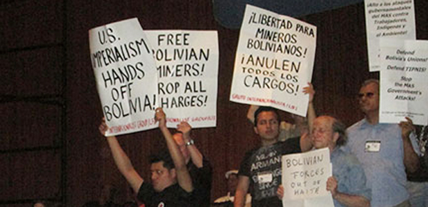 Mientras que el vicepresidente Álvaro García Linera presentaba, en el Foro de izquierda de Nueva York acontecido el pasado fin de semana, las “nueve tesis” sobre temas filosóficos y políticos, activistas de izquierda y sindicales –entre ellos varios inmigrantes latinoamericanos– realizaron una protesta llamativa.