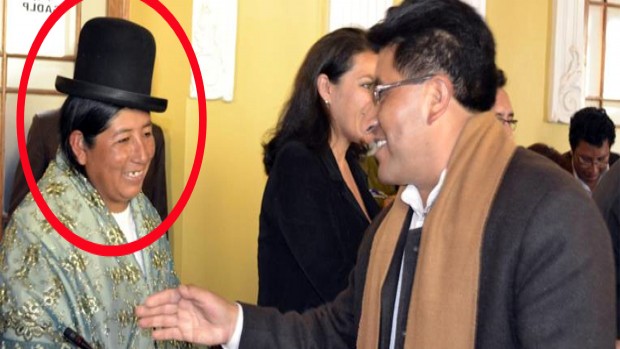Alicia Otoya Otoya saluda al Gobernador de La Paz. Foto: Facebook.