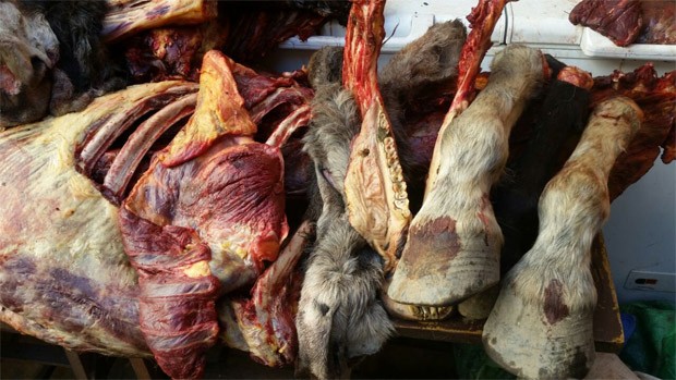 En el lugar se hallaron más de 500 kilos de carne, que corresponderían a tres caballos y seis burros.