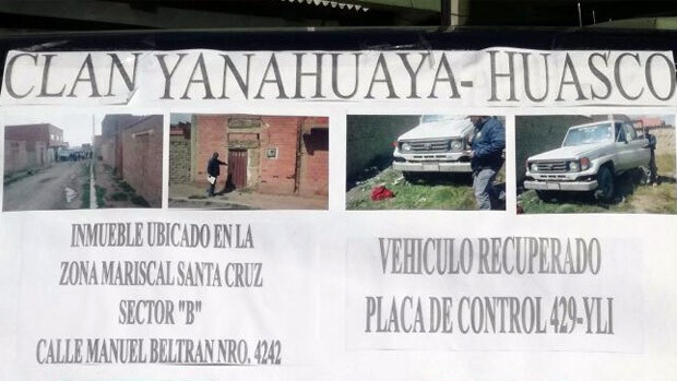 El director de esta unidad policial, coronel Adolfo Cerrudo, indicó que la pista del clan surgió tras la denuncia que hizo el pasado 28 de abril un ciudadano al que le habían robado su vagoneta Toyota Land Cruiser en la provincia Larecaja.