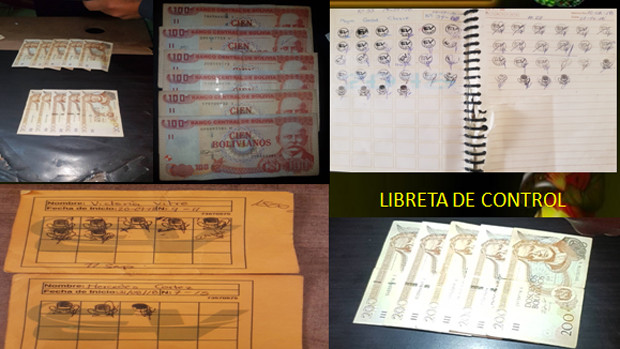 Como prueba del delito, la Policía recolectó cuadernos y tarjetas de la comerciante donde están los sellos con que se acredita la entrega de dinero.