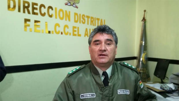 Coronel Jaldibeck Escobar, director de la FELCC-El Alto informó sobre el caso: Foto: Edwin Apaza.