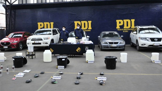 Según informó el portal Soy Chile, la Policía de Investigaciones intervino una parcela donde encontró varios insumos químicos destinados al “abultamiento” de cocaína.