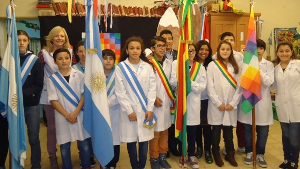 En la Escuela Bolivia, creada hace 87 años, los alumnos aprenden a entonar el Himno Nacional de Bolivia desde el primer grado y ahora, también, cantarán la Marcha Naval.