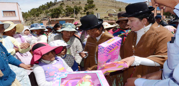 La ministra de Justicia, Virginia Velasco, regaló juguetes a los niños de las diferentes comunidades del municipio Puerto Pérez del departamento de La Paz, por Navidad.